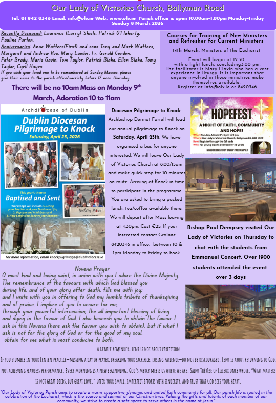 Months Mind: We pray for June Maloney, Ann Lowry, and Michael (Joe) Conway whose month’s mind occurs around this time.